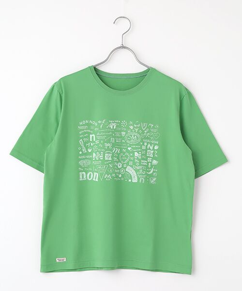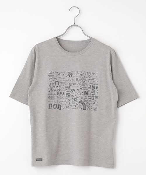 たくさんのロゴプリントが可愛らしい5分袖Tシャツ。後ろ衿ぐり下のプリントも後ろ姿のワンポイントになります。~生地~綺麗な表面感と柔らかな風合い、発色性の良さが特徴の天竺生地です。エアロシフォン加工は、生地をリラックスさせながら毛羽を抑えてテンションを与える、特殊な染色と日本に2台しかない稀少なタンブラーでソフトに叩きながら仕上げていく加工方法です。この新しい加工方法で生地が更に膨らみ、縮率も安定させています。※クルーネック※5分袖※衿→フライス※胸中央1色プリント(ロゴモチーフ多数)※後ろ衿ぐり下2色プリント(HAPPY DAY)