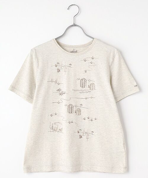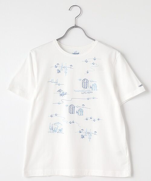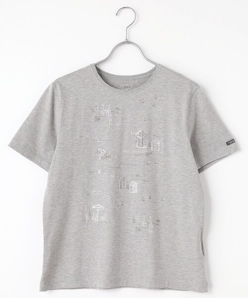 スパンコール刺繍がきらめく、NONNON人気のTシャツ。今年はビーチモチーフで登場です。~生地~綺麗な表面感と柔らかな風合い、発色性の良さが特徴の天竺生地です。エアロシフォン加工は、生地をリラックスさせながら毛羽を抑えてテンションを与える、特殊な染色と日本に2台しかない稀少なタンブラーでソフトに叩きながら仕上げていく加工方法です。この新しい加工方法で生地が更に膨らみ、縮率も安定させています。※クルーネック※半袖※衿→フライス※前身頃2色スパンコール刺繍(ドゥービルビーチ+ロゴ)※後ろ衿ぐり下2色スパンコール刺繍(ガイドボード)