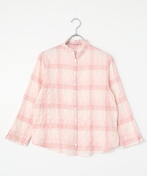 NONNONでは定番でありながら、不動の人気を誇るシャーリング素材のスタンドフリルブラウス。