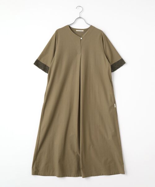 袖口の生地レースがポイントの上品なAラインワンピース。