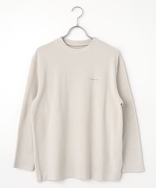 インナーにも外着にも使いやすいサイズ感のプルオーバー。暖かくデザイン性もあるボトルネック、柔らかな起毛素材は顔まわりを優しい印象に演出してくれます。内側は嬉しい綿素材、しっとりした肌触りです。~生地~バルキー性に優れた特殊なマイクロファイバーを使用し、膨らみのあるソフトな肌触りに仕上げました。他では真似出来ない職人技を駆使した、滑らかで美しい起毛が特徴の素材です。裏側には肌に優しい綿を使用し、着心地によさを追求した素材です。保温性も兼ね備えています。※9分袖※ボトルネック※左胸にロゴ刺繍