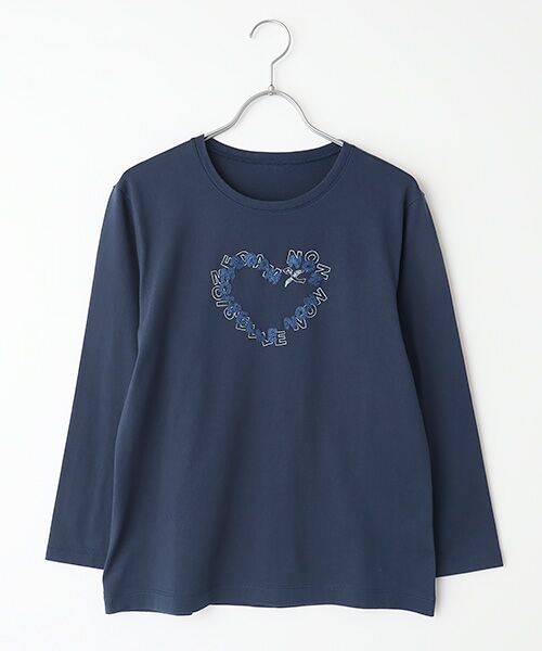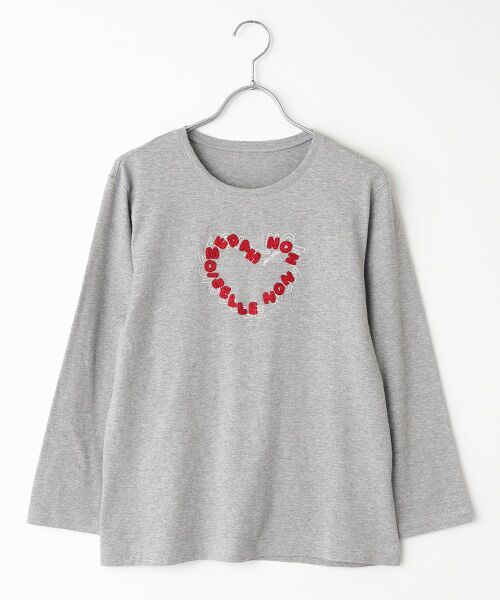 ハートとロゴを組み合わせたプリント&さがら刺繍が目を惹く8分袖Tシャツ。