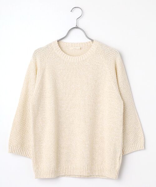 新感覚のニット糸を使用した、今から晩秋まで使えるプルオーバーニット。6分袖のゆったりとしたラグランスリーブで今っぽいシルエットに仕上げています。スカートをあわせたスタイリングがお勧めです。~生地~生後6ヶ月以内の原料を使用したラムズウールのカラーTOP糸と、カベ形状のカラー和紙を撚糸して作られたオリジナル素材です。紡毛の膨らみ感と柔らかさの中にも感じる和紙のハリ感が特徴で、抜群の軽さと素材の表情があります。和紙糸はリネンの替わりとして注目されている新感覚のニット糸です。※クルーネック※ラグランスリーブ※6分袖※左脇にピスネーム付き※天竺表目(身頃)+カノコ柄(袖)7G