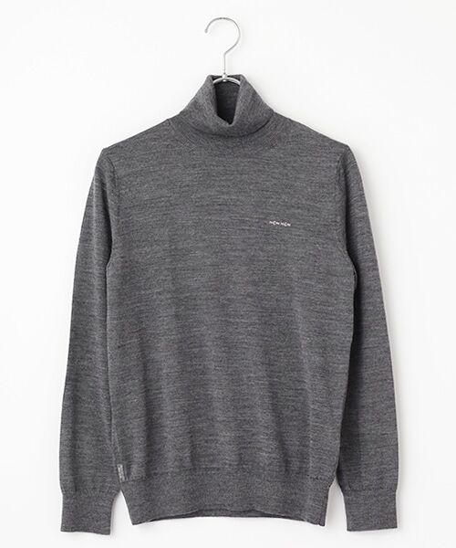 貴重なエクストラファインメリノを使用したタートルネックニット。ベーシックなデザインで着回しの効く便利な1枚です。冬にはネルシャツのインとしても暖かくお勧めです。同素材を使用したクルーネックカーディガンもございます。~生地~19.5μエクストラファインメリノを100%使用しています。エクストラファインメリノとは、3000種類以上も存在する羊の種類の中でも繊細な糸を生み出す事ができるメリノ種の羊毛です。一般的な羊の毛は20~24μですが、メリノ種の中でも『エクストラファインメリノ』は18.5~19.5μと細く繊細な糸です。綺麗な表面感と光沢、ソフトな風合い、天然繊維の吸湿性、放湿性も持ち合わせた上質な素材です。※タートルネック ※長袖※左胸に「NON NON」の刺繍モチーフ