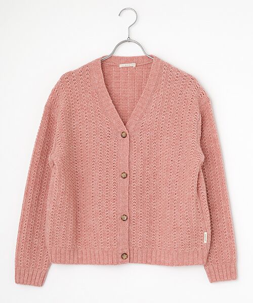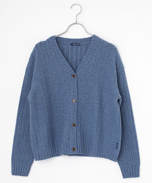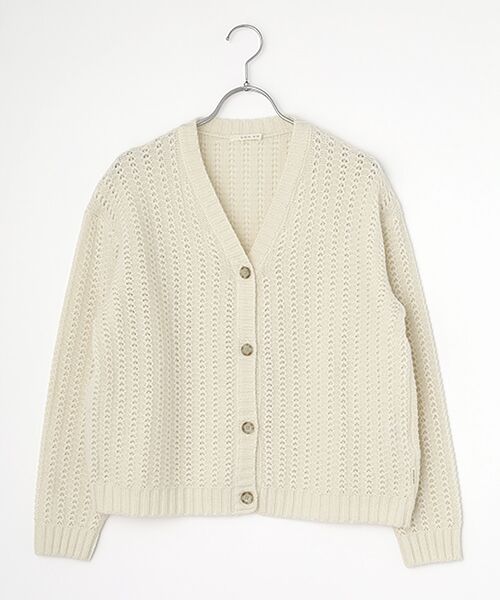 バルキーなニットらしい雰囲気ながらとっても軽い着心地です。きれいな色目でニットらしくほっこりするアイテムです。同素材を使用したケーブルニットベストもございます。~生地~オフスケール加工(防縮加工)を施したハリとコシ、弾力性に富んだ紡毛糸です。国内にて紡績及び染色を行い、膨らみのある軽く豊かな風合いとメランジ感のある深い色合いが特徴です。透かし編みにする事で、軽やかさと華やかさを更にプラスしました。※長袖※前釦開き、ドロップショルダー※左脇にピスネーム付き※5G透かし柄
