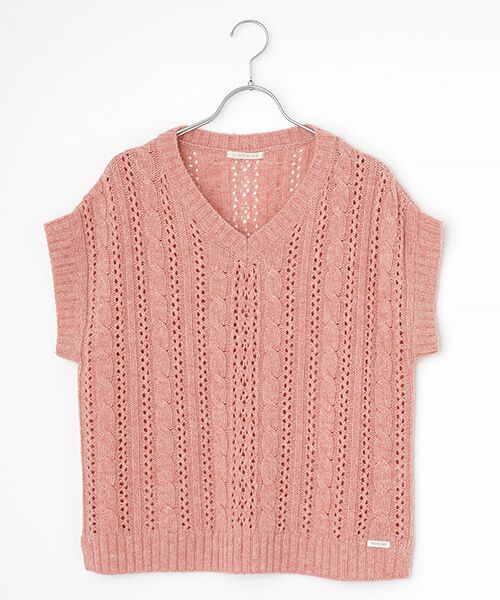 透かし柄を入れざっくりとしたケーブル編みに仕上げたニットベスト。熱もこもらず柔らかい着心地です。ボトムも選ばず合わせられ、コーディネートの幅が広がります。同素材を使用したVネックカーディガンもございます。~生地~オフスケール加工(防縮加工)を施したハリとコシ、弾力性に富んだ紡毛糸です。国内にて紡績及び染色を行い、膨らみのある軽く豊かな風合いとメランジ感のある深い色合いが特徴です。透かし編みにする事で、軽やかさと華やかさを更にプラスしました。※Vネック※開き無し※ドロップショルダー※左裾リブ上にピスネーム付き※5G透かし柄、ケーブル柄