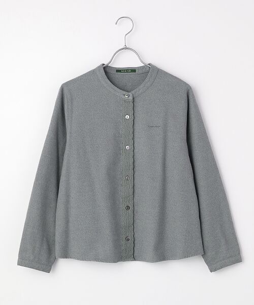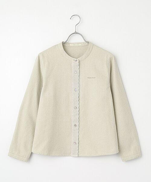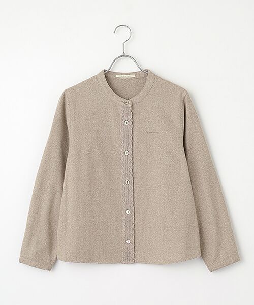 前立ての太レースが女性らしく華やぐ印象のブラウス。