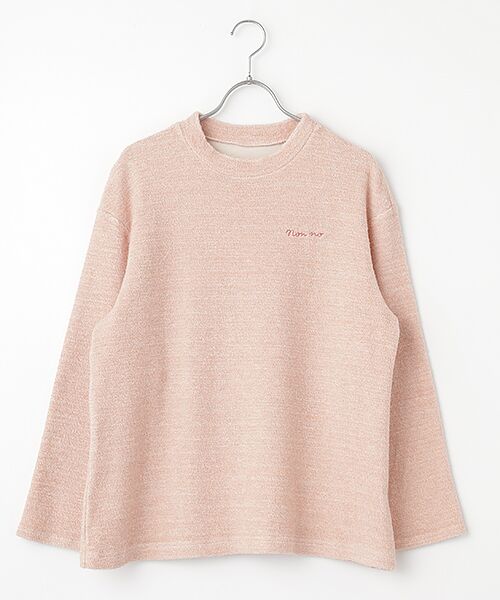 こちらの素材は通常の裏毛より、膨らみと柔らかな風合いが特徴のNONNOオリジナル素材です。表側のループ面をTOP杢と先染め糸で交編していますので、絶妙なカラー杢の見え方になっています。加工は、表のループ面に微起毛を施すことにより、盲縞のカラーTOPが馴染んだ雰囲気に仕上がっています。