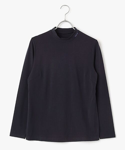 ピスネームがアクセントになっているハイネックTシャツ。タートルネックでは暑く感じる方や締め付け感が苦手な方におすすめです。原料は抗ピルタイプのアクリルバルキー綿を使用し、レーヨンと混紡しています。バルキー綿を使用することにより、生地に膨らみが生まれ、さらにレーヨンを混紡することで肌触りのよい生地に仕上がっています。吸湿発熱の起毛を持ち、秋冬のインナー素材に適した仕上がりになっています。※製品洗いのため、寸法にばらつきが出る場合がございます。ご了承ください。※ハイネック※9分袖※衿ぐりにピスネーム挟み込み※手洗い可