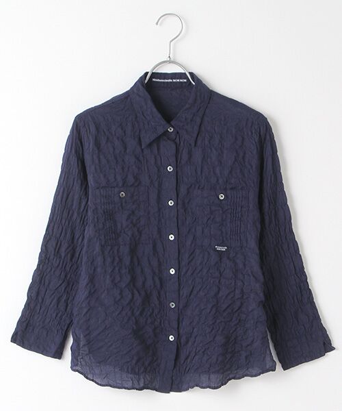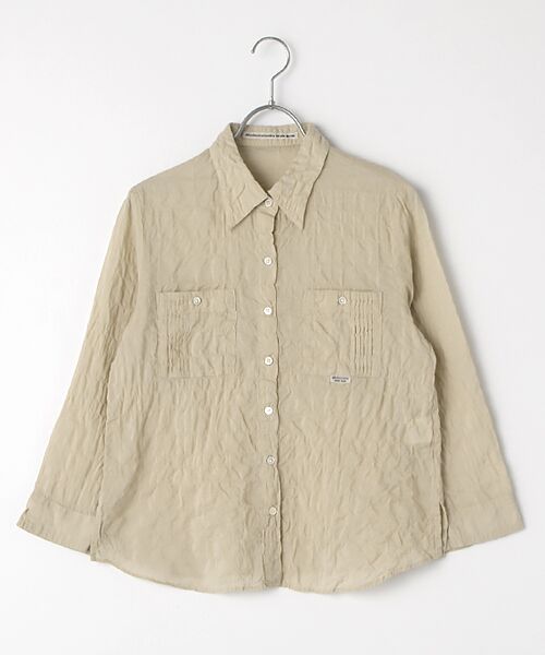 レディース 綿モダールシャーリング ポケット付きブラウス【8分袖】ピンタック入りのポケットが両胸についたブラウス。羽織として、中にTシャツやタンクトップを合わせていただくのもお勧めです。ノンアイロンなのも嬉しいポイントです。~生地~タテ糸に超長綿、ヨコ糸にモダールを交織に織り上げた綿モダールローンシャーリング素材。コットンの清涼感があり、吸湿性にも優れています。また手触りが絹のように滑らかで、高級感がある生地です。※台衿あり※袖口スリット