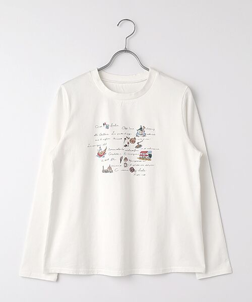 イタリア旅行の思い出を綴った絵日記風のモチーフを、顔料プリントで表現しました。1枚で主役になるプリントデザインはもちろん、ジャケットやニットのインナーとしても活躍します。程よい厚みのある生地を使用しており、型崩れしにくく長く愛用できる一枚です。