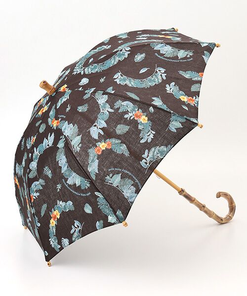 手捺染プリントにて、ハイビスカスやトロピカルの葉をモチーフとした日傘です。
