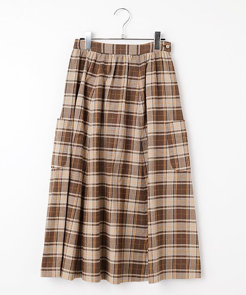 軽くてソフトな風合いが特徴のチェック素材を使用したギャザーフレアースカート。