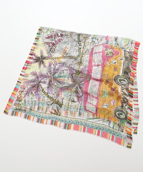 ストリアティピックのバス柄ストール。~STORIATIPIC~スタイリスト兼クリエイターのマリー・ゴザールが立ち上げたブランド。歴史あるインド伝統手工業の技法と、フレンチファッションのパッションを組み合わせ、ベーシックなワードローブを目覚めさせるような鮮やかでカラフルなアイテムが特徴。