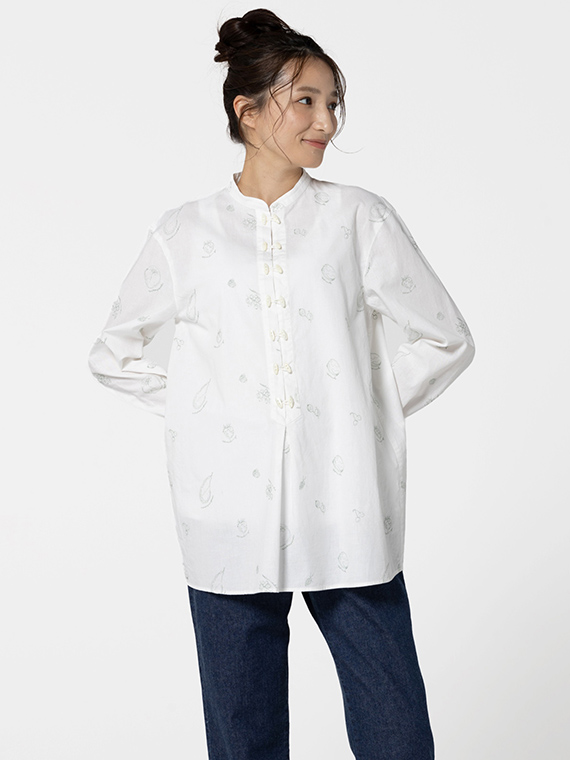 タテ・ヨコともにコットン60/1を使用したローン素材に全面柄を刺繍を施したエンブロイダリーレースです。ソフトで繊細な60/1ローンにエンブロイダリー加工をした後、後染めにて染色を施しています。ふくらみのあるナチュラルな風合いと立体的な全面柄がマッチングした表情豊かな素材に仕上がっています。