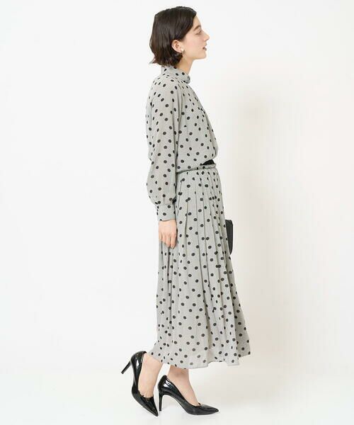 フォーマルなカラーリングに可愛らしいドット柄ポイントなスカート。かっちりしたスタイルからカジュアルな着こなしまでお楽しみいただけます。一枚で華やかさのある一着なので、かっちりと着たい通勤やセレモニーシーンなどに活躍します。