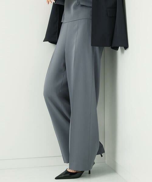 スッキリとしたヒップ周りと太すぎない程よい幅のワイドパンツ。着用時、腰が丸く見えないマニッシュなシルエットがポイントです。バックウエストもゴム仕様で着心地良く。