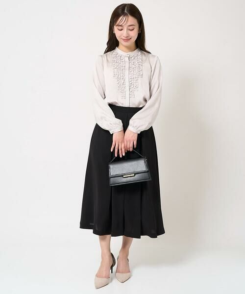 フロントにフリルディティールを効かせた華やかなブラウス。一枚でも着映え、ポイントがフロントにあるので、上からアウターを羽織ってフリルを覗かせても様になるデザインです。