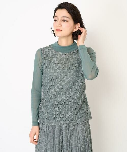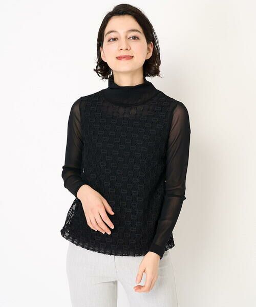 [日本製]ナイロンチュールクロシェ風レースカットソー