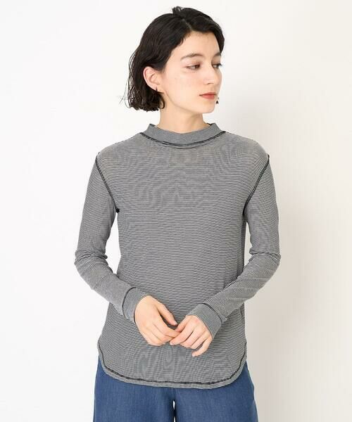 首元にやや高さを持たせたモックネックデザインがポイントで、春のインナーとして重宝すること間違いなしのカットソー。