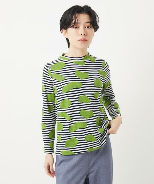 ノーマルボーダーよりポップな印象な柄なのでカジュアルスタイルを元気に見せてくれる一枚です。
