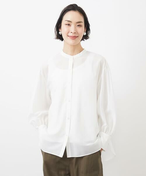 1枚でサマ見えが叶う、エアリーで女性らしいシアーブラウス。着回し力抜群で、様々なシーンにフィットする万能ブラウスです。