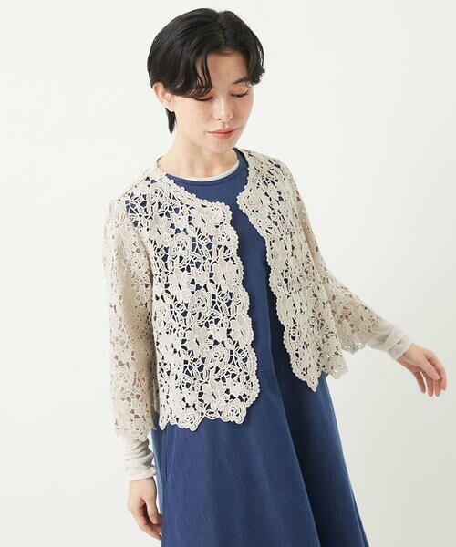 レース使いが上品で大人らしいボレロブラウス。 かっちりとしすぎずほどよいラフさがあるので、きれいめはもちろんカジュアルダウンさせた着こなしもおしゃれ。 透けがあるので中に合わせるインナーを変えるだけで、雰囲気を変えられますよ。 軽やかなブラウスで春のお出かけを楽しんで。