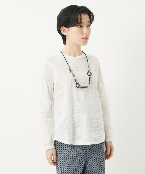 透け感のあるリップル天竺を使用したカットソーブラウスです。