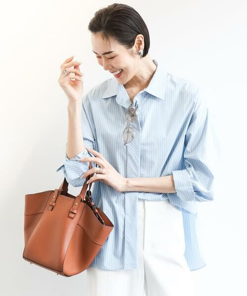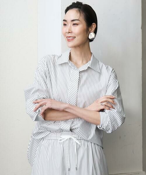 リラックス感のあるオーバーサイズのシャツは、人気継続中。スカートとセットアップで着る時は前裾インでワンピ見えさせる着こなしがおすすめ。パンツと合わせてハオリ代わりにしても◎