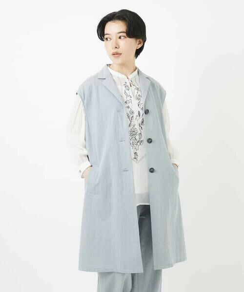 前を開けてさらりと羽織り、カジュアルに普段使いしていただくのも、同素材のパンツ【NHLGA30250】と合わせてお仕事着やオケージョンスタイルにお使いいただくものおすすめです。