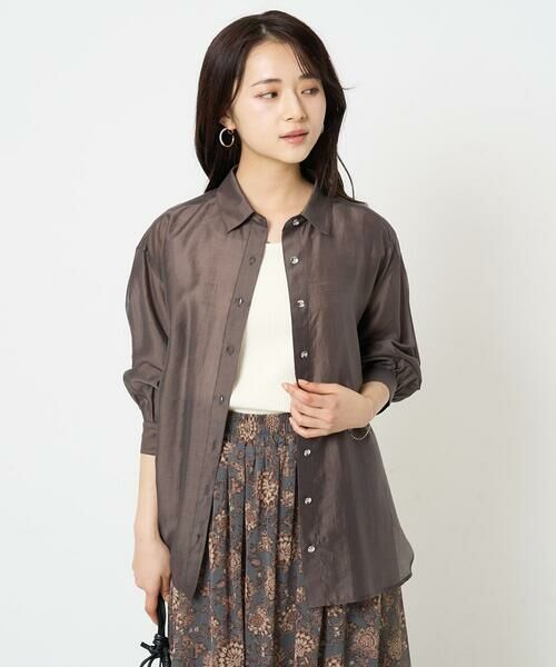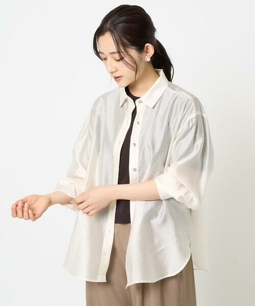 シンプルなデザインが使い勝手の良いシャツブラウス。着丈に前後差があり、後ろ丈はヒップまでしっかりと隠れる丈感です。さっと着るだけで抜け感の生まれるシャツはロングシーズンで重宝してくれること間違いなし。