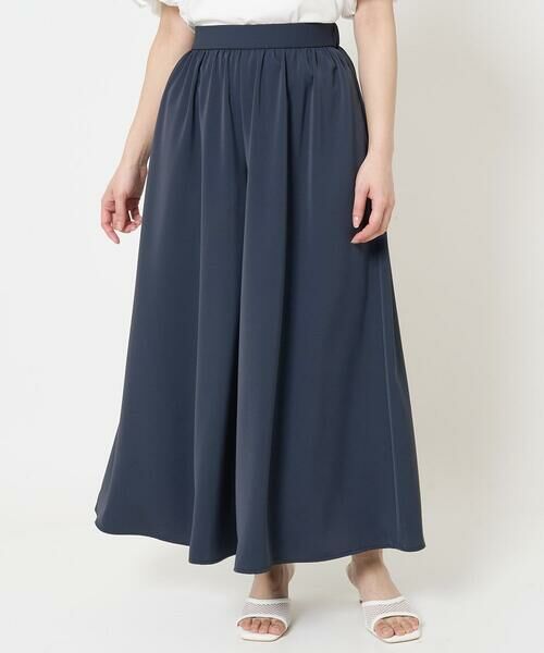 分量感のあるガウチョパンツはシンプルなトップスと合わせるだけで様になります。素材の表面感がきれいめなので、カジュアルになりすぎずに大人コーデにマッチします。裏なしなので軽い履き心地も嬉しい。