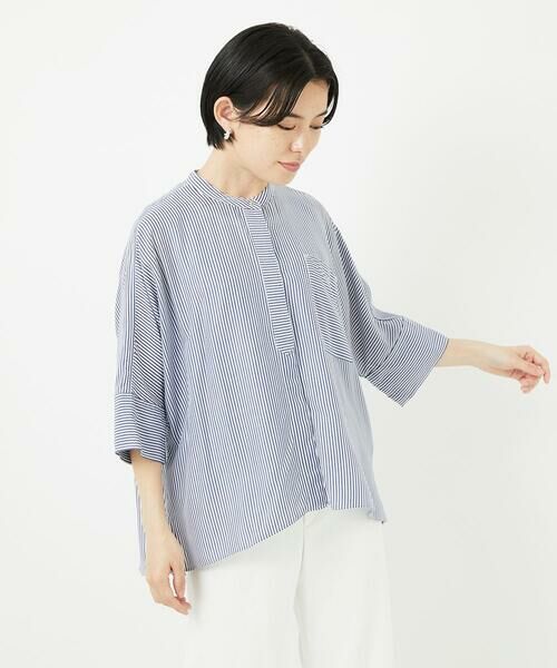 2024年春夏に大ヒットしたブラウスの新バージョンが登場。今回は素材や柄、カラーを変更しており、無地とマルチピッチストライプ、ロンドンストライプの展開となっています。羽織としてもお使いいただけるように前開きのデザインにブラッシュアップ。シャツ本来のきちんと感は残しつつ、ゆるシルエットでほど良く力の抜けたリラクシーな雰囲気を醸し出してくれます。