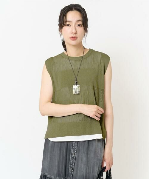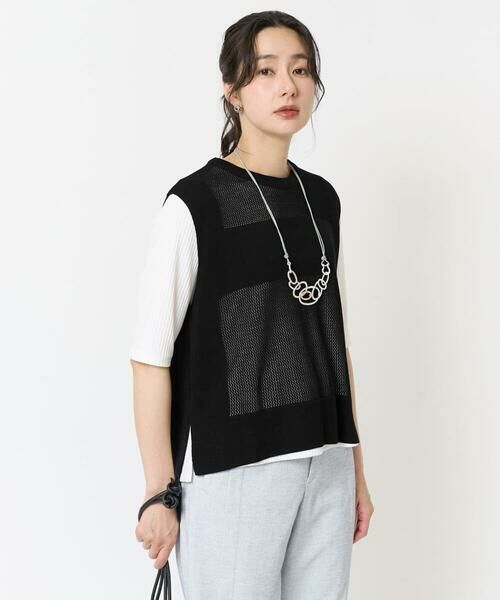 表情豊かなメッシュ×総針の異素材コンビがアクセントに。バックスリットが軽やかさをプラスし、レイヤードに抜け感を演出。シャツやTシャツに重ねるだけで、一気に旬の着こなしに仕上がります。