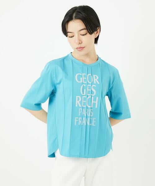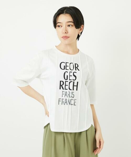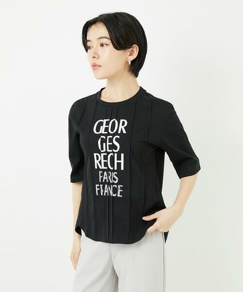 ジョルジュ・レッシュのロゴをプリントしてからピンタックを入れ、わざとロゴを崩した変化球のロゴプリントカットソーです。存在感のあるロゴながらピンタックで崩しているのでアートっぽくコーデに馴染みやすいデザインとなっています。少し落ち袖のゆとりあるシルエットで着心地の良い一枚です。