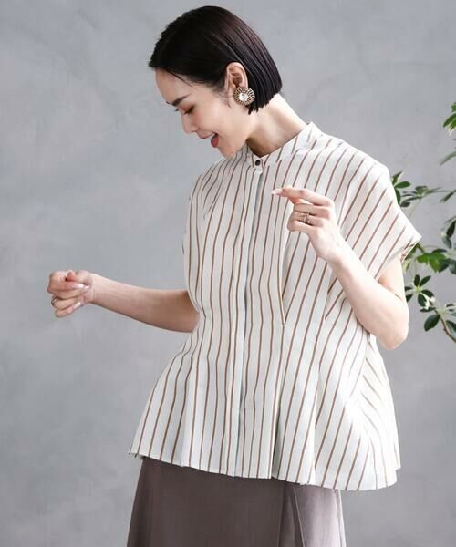 ストライプ柄デザインタックブラウス【F6BGA05210】