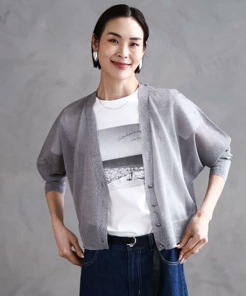 Maison de CINQ / メゾン ドゥ サンク カーディガン・ボレロ | [小さいサイズ]シアーラメVネックカーディガン(ホワイト)