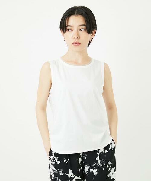 襟元のチュールが涼し気な印象をプラスしてくれる、季節感たっぷりのタンクトップ