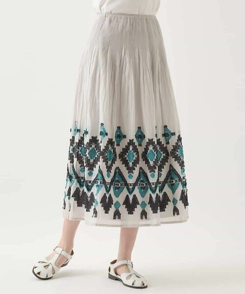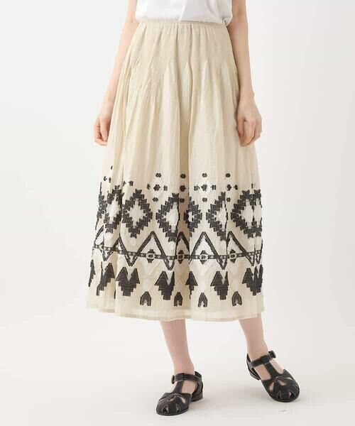 プリミティブなモチーフが大人フェミニンに印象付けるフレアスカート
