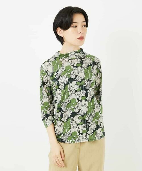 Maison de CINQ / メゾン ドゥ サンク カットソー | リネン天竺ラインフラワープリントプルオーバー(グリーン系)