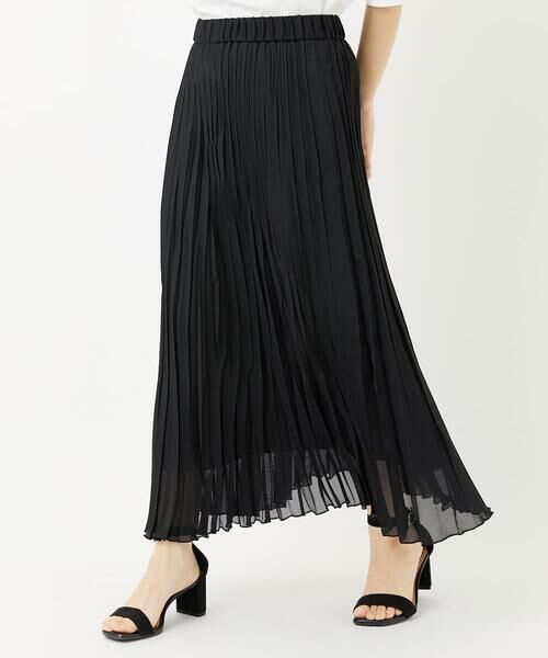 プリーツの立体感とほどよいシアー感でフェミニンな印象にしてくれるスカート