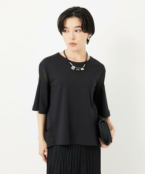 シアー素材とフレアな袖がポイントのジャージーカットソー