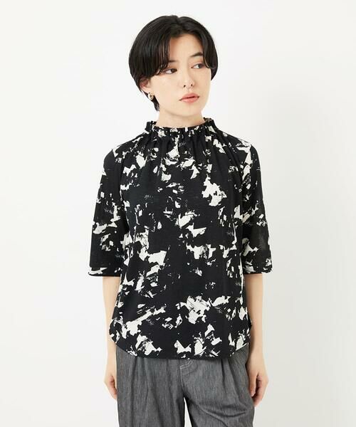 ・ほどよい落ち感で女性らしさがありつつ、アブストラクトな刷毛タッチの柄感がスタイリッシュなムードにしてくれます