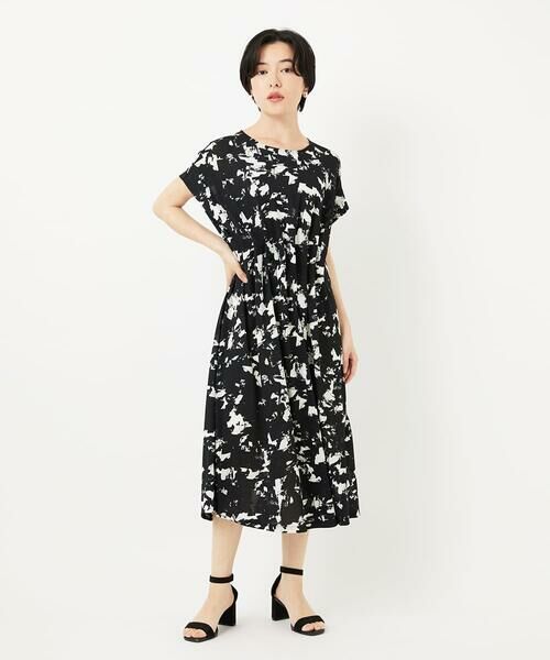 視線が集まるプリント柄で、すっきり着られる一枚着のワンピース