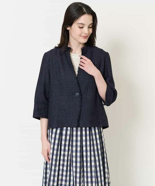 フリンジ使いが上品さを醸し出すボレロ風シルエットの一着。