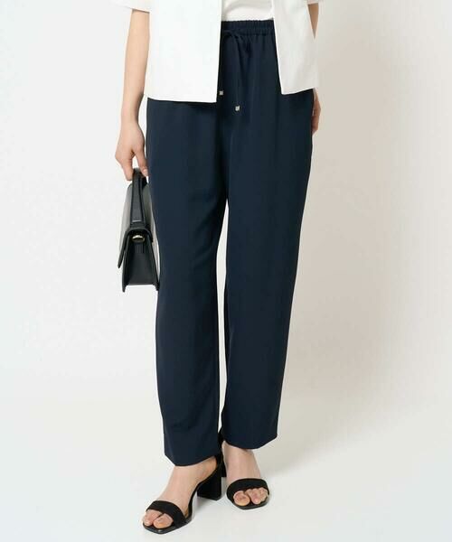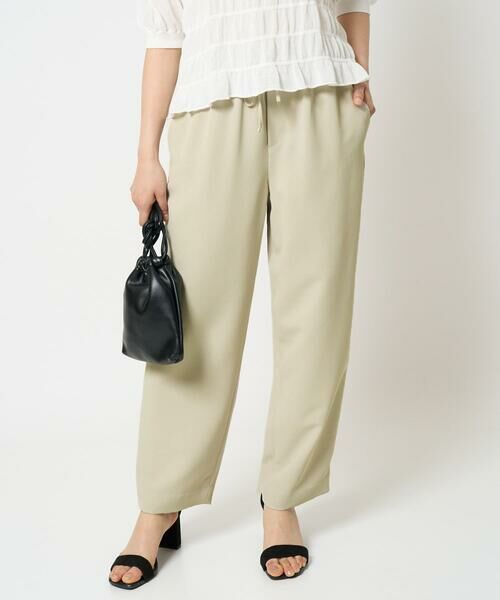 ややゆとりのあるシルエットのテーパードパンツ。ウエストがドロスト仕様の調節ができるデザインに。どなたでも着用しやすく、ストレスのない穿き心地のパンツです。
