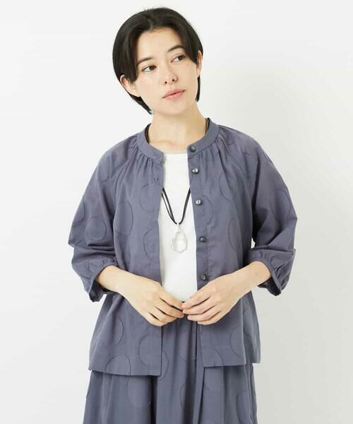 コットン100%の涼やかで可憐なドット柄ジャガード前開きブラウス