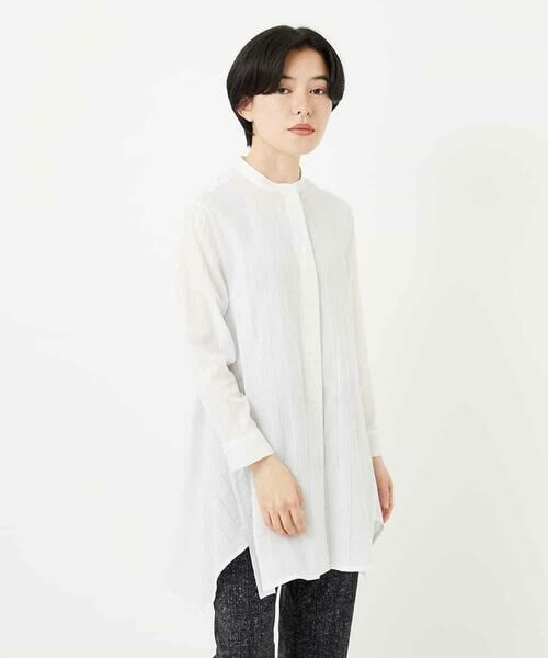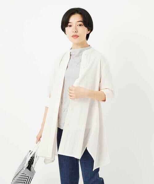 ナチュラルな表面に見た目涼しさを感じる空羽織(あきはおり)を使用したチュニックブラウス。