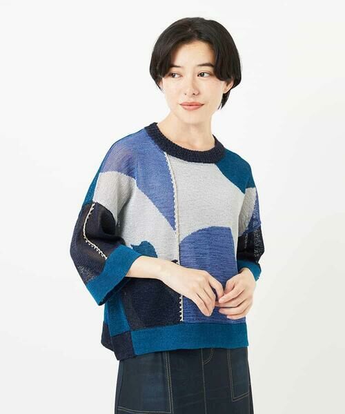 ドライタッチな生地感にインターシャで柄を表現したプルオーバーニットです。
