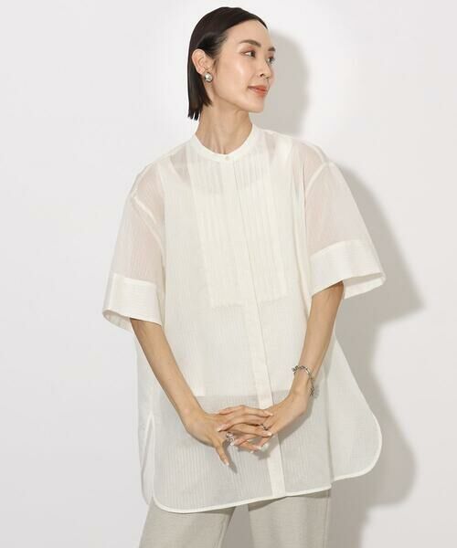 ハリ感のある素材を活かし、優し気のあるフワッとしたシルエットが肌離れの良い、大人のシアーブラウス。